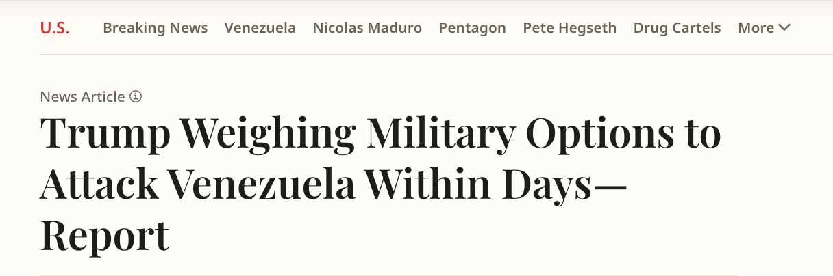 美国《新闻周刊》报道,特朗普正在权衡于数日内对委内瑞拉发起军事打击。